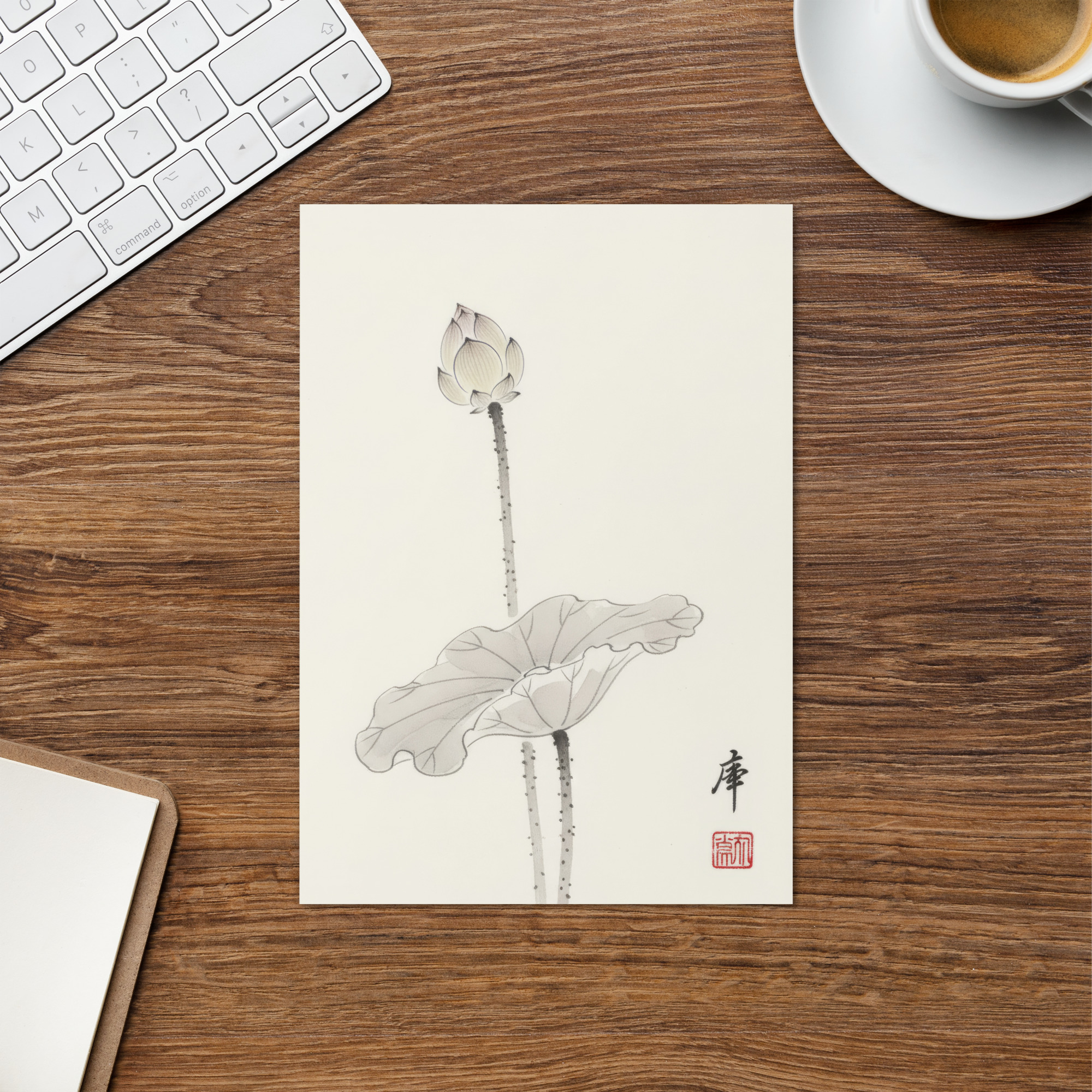 Bring quiet strength to your message with this Japanese sumi-e card featuring a closed lotus bud.